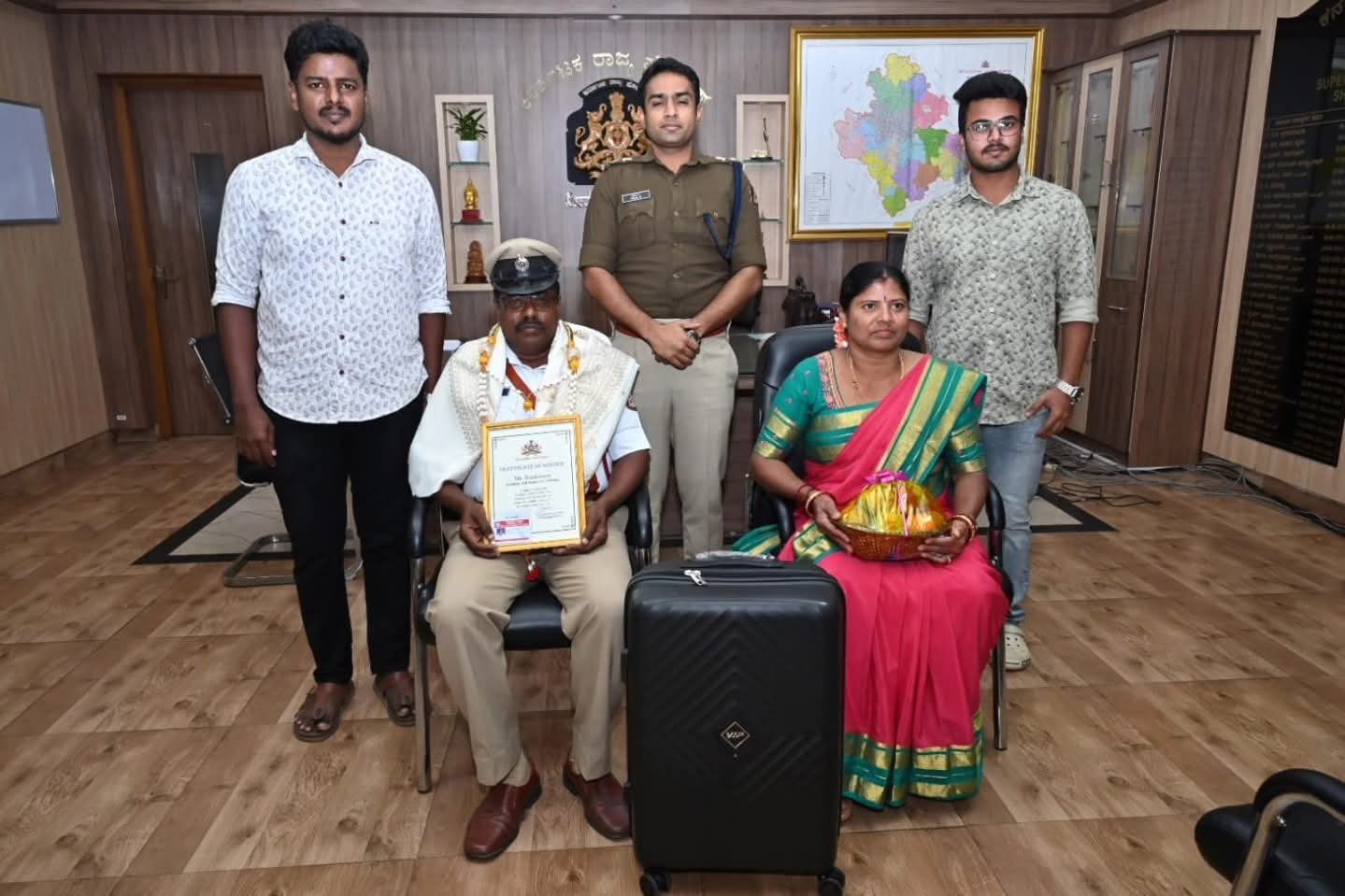 ಇವರಿಗೆ ಶಿವಮೊಗ್ಗ ಜಿಲ್ಲಾ ಪೊಲೀಸ್ ವತಿಯಿಂದ ಜಿಲ್ಲಾ ಪೊಲೀಸ್ ಕಚೇರಿಯಲ್ಲಿ ಎಸ್ ಪಿ‌ ನಿಖಿಲ್ ಸನ್ಮಾನಿಸಿ ಬೀಳ್ಕೊಡುಗೆ ನೀಡಿ ಮುಂದಿನ ನಿವೃತ್ತಿ ಜೀವನಕ್ಕೆ ಶುಭ ಕೋರಿದರು.