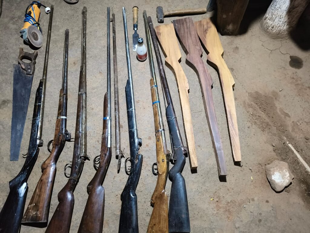 ಶಿವಮೊಗ್ಗ ಜಿಲ್ಲೆಯ ಶಿಕಾರಿಪುರ ಉಪವಿಭಾಗದ ಶಿಕಾರಿಪುರ ಪಟ್ಟಣ ಪೊಲೀಸ್ ಠಾಣಾ ವ್ಯಾಪ್ತಿಯ ಭದ್ರಾಪುರ ಗ್ರಾಮದಲ್ಲಿ ಅಕ್ರಮವಾಗಿ ನಾಡಬಂದೂಕುಗಳನ್ನು ತಯಾರಿಸಿ ಮಾರಾಟ ಮಾಡಲು ಸಂಗ್ರಹಿಸಿಟ್ಟಿದ್ದ ಪ್ರಕರಣವನ್ನು ಪೊಲೀಸರು ಪತ್ತೆಹಚ್ಚಿ, 7 ಸಿಂಗಲ್ ಬ್ಯಾರಲ್ ನಾಡಬಂದೂಕುಗಳನ್ನು ಜಪ್ತಿ ಮಾಡಿಕೊಂಡಿದ್ದಾರೆ.