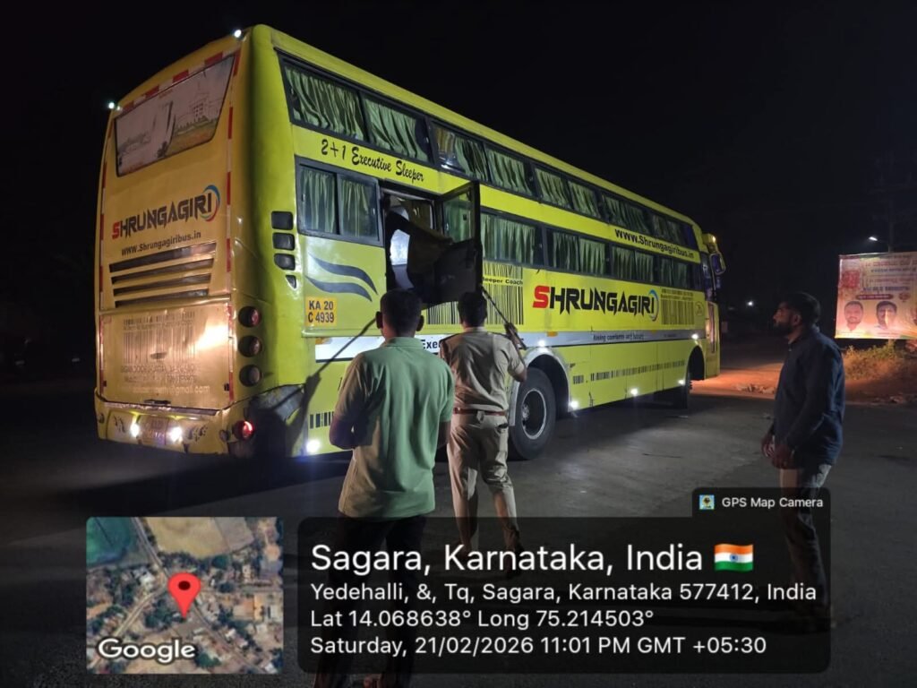 ಸ್ಲೀಪರ್ಕೋ ಚ್ ಬಸ್ಗಳಲ್ಲಿ ಎಮರ್ಜೆನ್ಸಿ ಎಕ್ಸಿಟ್ ಡೋರ್ಗಳ ಕಾರ್ಯಕ್ಷಮತೆಯನ್ನೂ ಪರಿಶೀಲಿಸಲಾಯಿತು.ರಾತ್ರಿ ವೇಳೆಯಲ್ಲಿ ಕಾನೂನು ಸುವ್ಯವಸ್ಥೆ ಕಾಪಾಡಲು ಹಾಗೂ ಅಪರಾಧ ತಡೆಗಟ್ಟಲು ಪೊಲೀಸರು ಕಟ್ಟು ನಿಟ್ಟಿನ ಕ್ರಮ ಕೈಗೊಂಡಿರುವುದು ಗಮನಾರ್ಹವಾಗಿದೆ.