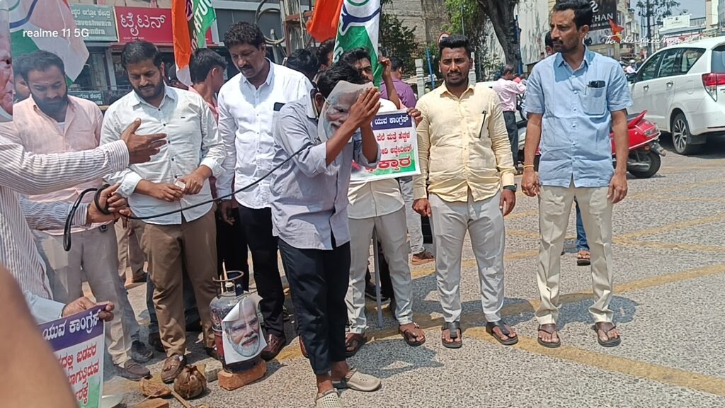 ಶಿವಮೊಗ್ಗ, ನಿನ್ನೆ ದಿವಸ ದಿನಾಂಕ 10-03-2026 ರಂದು ಶಿವಮೊಗ್ಗ ನಗರದ ಗೋಪಿ ಸರ್ಕಲ್ನಲ್ಲಿ ಯುವ ಕಾಂಗ್ರೆಸ್ ವತಿಯಿಂದ ನಡೆದ ಪ್ರತಿಭಟನೆ ಕಾರ್ಯಕ್ರಮದಲ್ಲಿ, ಮಾನ್ಯ ಭಾರತದ ಪ್ರಧಾನಮಂತ್ರಿಗಳಿಗೆ ಅವಮಾನವಾಗುವ ರೀತಿಯಲ್ಲಿ ಅಣಕು ಪ್ರದರ್ಶನ ಮಾಡಲಾಗಿದೆ ಎಂಬ ಆರೋಪದ ಹಿನ್ನೆಲೆಯಲ್ಲಿ ಸಾರ್ವಜನಿಕ ವಲಯದಲ್ಲಿ ಆಕ್ರೋಶ ವ್ಯಕ್ತವಾಗಿದೆ.