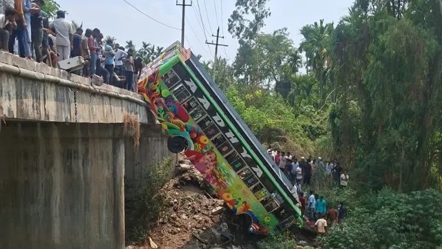 ದಾವಣಗೆರೆಯಿಂದ ಭದ್ರಾವತಿಗೆ ಸಂಚರಿಸುತ್ತಿದ್ದ ಖಾಸಗಿ ಬಸ್ಸೊಂದು ಚಾಲಕನ ನಿಯಂತ್ರಣ ತಪ್ಪಿ ಸೇತುವೆಯಿಂದ ಕೆಳಕ್ಕೆ ಬಿದ್ದಿರುವ ಘಟನೆ ಭದ್ರಾವತಿ ತಾಲ್ಲೂಕಿನ ವೀರಾಪುರ ಸಮೀಪದ ಕಾಗೆಹಳ್ಳದಲ್ಲಿ ಇಂದು ಸಂಭವಿಸಿದೆ .