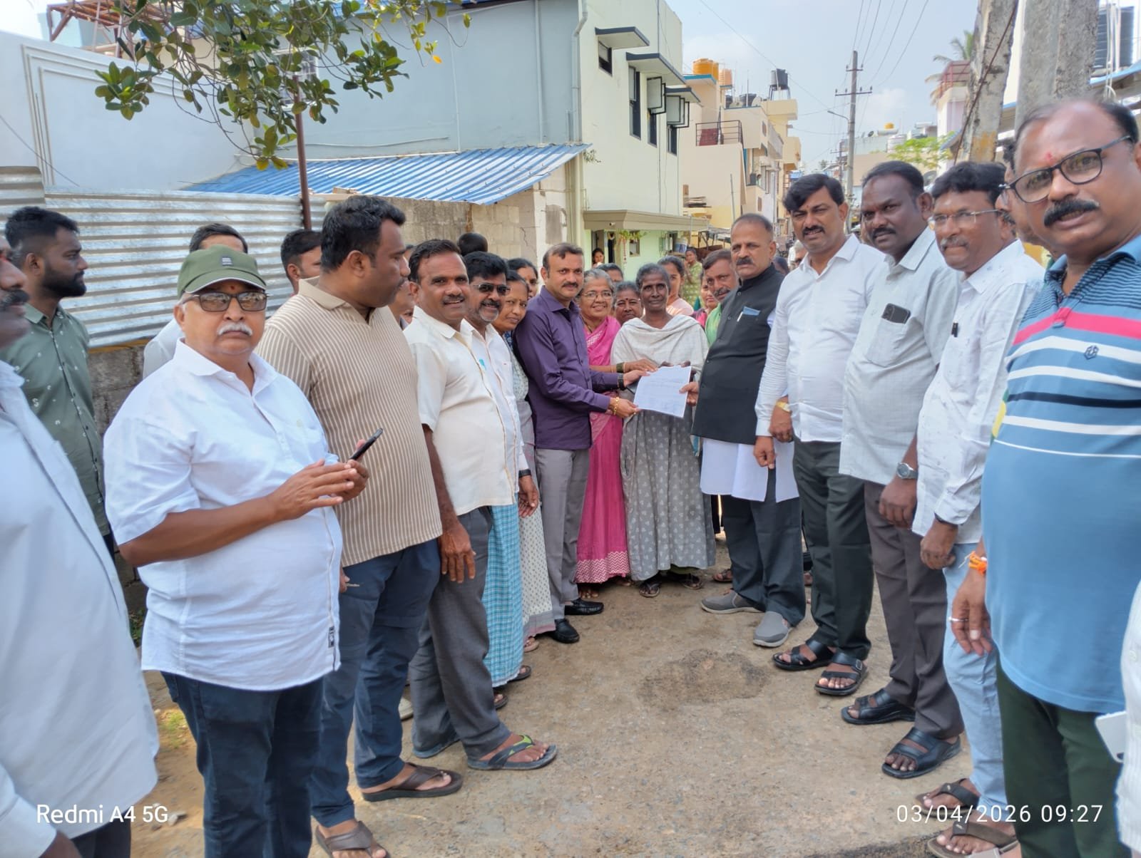 ದಿನಾಂಕ: 31-03-2026 ರ ಮಂಗಳವಾರ ರಾತ್ರಿ ಸುರಿದ ಅಕಾಲಿಕ ಮಳೆಯಿಂದ ಆದರ್ಶಕಾಲೋನಿಯ ಸುಮಾರು 25-30 ಮನೆಗಳಿಗೆ ಪ್ರತಿ ಮನೆಯಲ್ಲಿಯೂ 5-6 ಅಡಿ ನೀರು ಸಂಗ್ರಹವಾಗಿತ್ತು ಈ 5-6 ಅಡಿ ಸಂಗ್ರಹವಾದ ಮಳೆ ನೀರನ್ನ ರಾತ್ರಿಯಿಡಿ ಗಂಡಸರು, ಹೆಂಗಸರು ಮತ್ತು ಮಕ್ಕಳು ಹೊರಗೆ ಚೆಲ್ಲುವುದೆ ಕೆಲಸವಾಗಿತ್ತು ಎಂದು ಸ್ಥಳ ಪರಿಶೀಲನಾ ಸಮಯದಲ್ಲಿ ನೆರೆದಿದ್ದ ಆದರ್ಶ ಕಾಲೋನಿಯ ನಿವಾಸಿಗಳು ಕಾಂತೇಶ್ ಈಶ್ವರಪ್ಪನವರಿಗೆ ವಿವರಿಸಿದರು.
