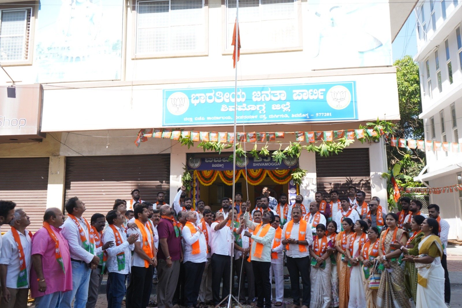 ಶಿವಮೊಗ್ಗ, ಬಿಜೆಪಿ ಸಂಸ್ಥಾಪನಾ ದಿನಾಚರಣೆಯನ್ನು ಇಂದು ಶಿವಮೊಗ್ಗ ಜಿಲ್ಲಾ ಬಿಜೆಪಿ ಕಚೇರಿಯಲ್ಲಿ ಉತ್ಸಾಹಭರಿತವಾಗಿ ಹಾಗೂ ಭಕ್ತಿಪೂರ್ವಕವಾಗಿ ಆಚರಿಸಲಾಯಿತು.