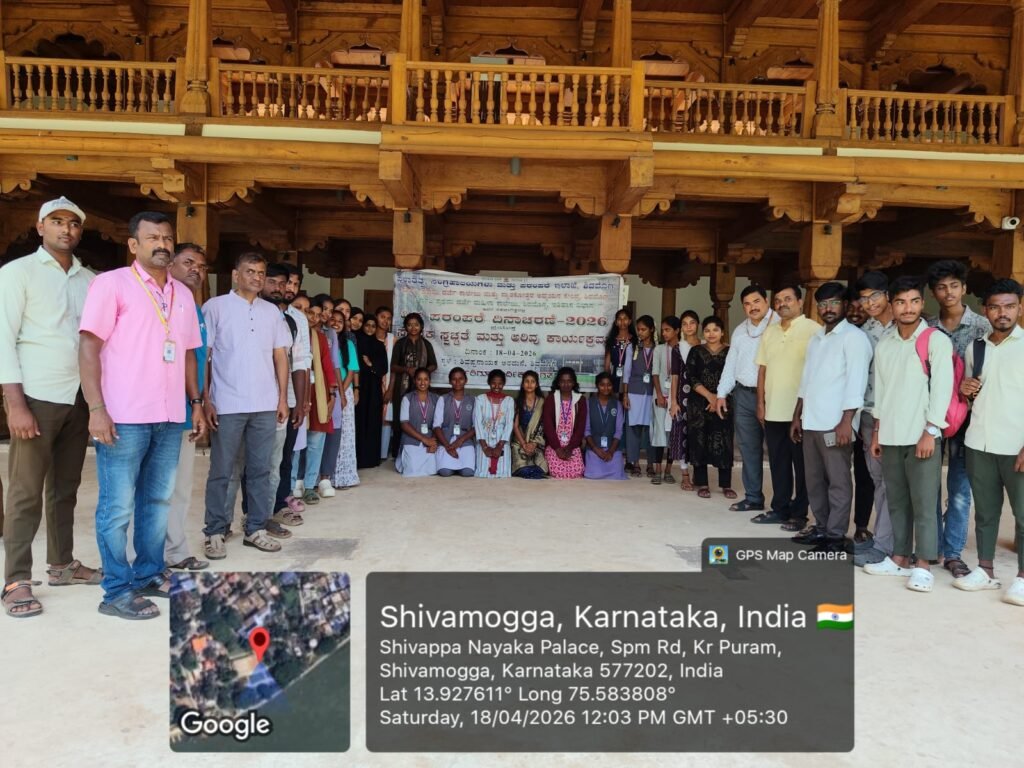 ಶಿವಮೊಗ್ಗ,ಶಿವಪ್ಪ ನಾಯಕ ಅರಮನೆ ಪುರಾತತ್ವ ಸಂಗ್ರಹಾಲಯಗಳು ಮತ್ತು ಪರಂಪರೆ ಇಲಾಖೆ ಸಹಾಯಕ ನಿರ್ದೇಶಕರ ಕಚೇರಿ ಸರ್ಕಾರಿ ವಸ್ತು ಸಂಗ್ರಹಾಲಯ ಶಿವಮೊಗ್ಗ, ಇತಿಹಾಸ ಪರಂಪರೆ ಕೂಟ ಹಾಗೂ ಎನ್.ಎಸ್.ಎಸ್.ಘಟಕ ಸರ್ಕಾರಿ ಪ್ರಥಮ ದರ್ಜೆ ಮಹಿಳಾ ಕಾಲೇಜು ಹಾಗೂ ಸರ್ಕಾರಿ ಪ್ರಥಮ ದರ್ಜೆ ಕಾಲೇಜು ಇವುಗಳ ಸಹಯೋಗದೊಂದಿಗೆ ದಿನಾಂಕ 18-04-2026 ಶನಿವಾರದಂದು ವಿಶ್ವ ಪರಂಪರೆ ದಿನಾಚರಣೆ-2026 ಪ್ರಯುಕ್ತ ಶಿವಮೊಗ್ಗ ನಗರದ ಶಿವಪ್ಪ ನಾಯಕ ಅರಮನೆಯ ಆವರಣದಲ್ಲಿ ಮತ್ತು ವಸ್ತು ಸಂಗ್ರಹಾಲಯದ ಒಳಭಾಗದ ಸ್ಮಾರಕಗಳ ಸ್ವಚ್ಚತಾ ಕಾರ್ಯಕ್ರಮ ಹಾಗೂ ಪರಂಪರೆಯ ಸಂರಕ್ಷಣೆಯಲ್ಲಿ ಯುವಜನರ ಪಾತ್ರ ಎಂಬ ವಿಷಯ ಕುರಿತು ಉಪನ್ಯಾಸ ನೀಡಿದರು.